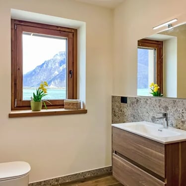 Magnifica vista sul lago e sulle montagne. Giardino direttamente sul lago.